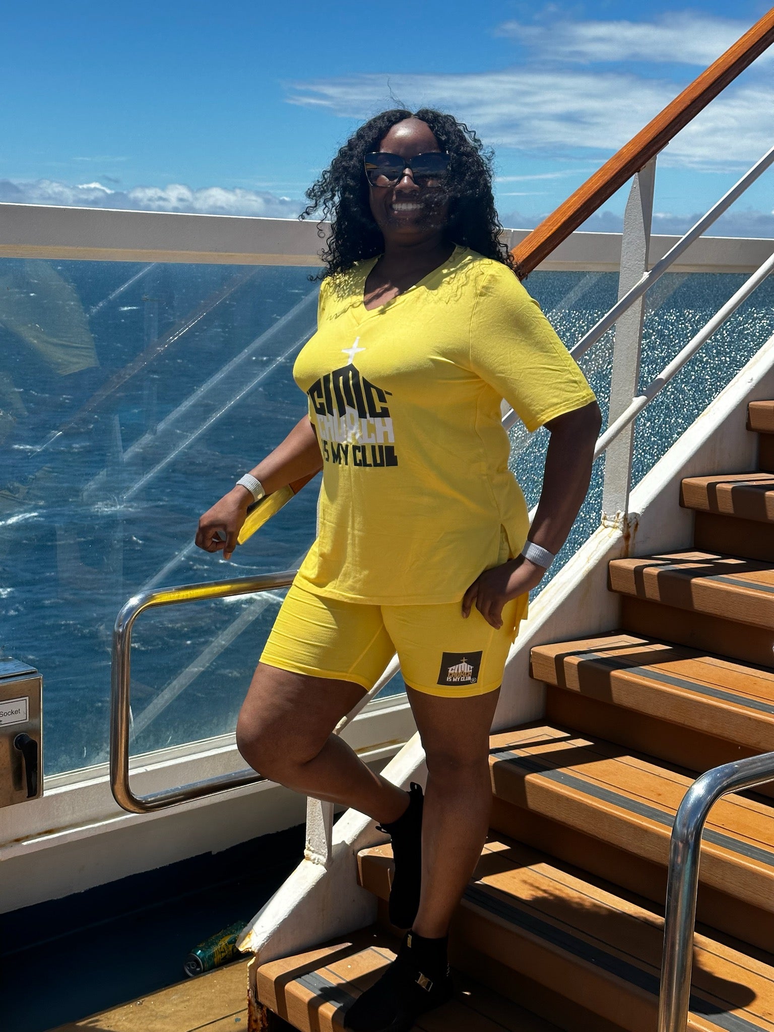 The CIMC Logo Biker Short Set is designed to keep you modest while still making a fashion statement! This high-low top set is perfect for a variety of occasions. Available in multiple sizes, the set fits true to size for a comfortable and flattering fit. Show off your style with this chic biker short set.